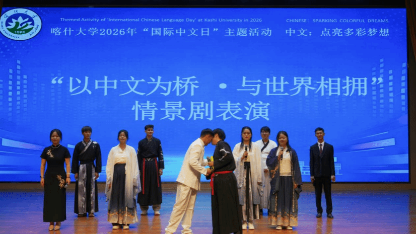 丝路传韵承文脉,中文连心筑梦桥。4月22日,喀什大学2026年“国际中文日”主题活动在新泉校区大学生活动中心举办。校党委副书记、校长帕力旦・吐尔逊出席活动并致辞,新疆理工职业大学、塔里木大学、海南自贸区德航集团有限公司相关负责人,塔里木大学国际学生代表,吉尔吉斯斯坦国立民族大学、伊塞克湖国立大学交换生,以及喀什大学外籍教师、师生代表齐聚一堂,活动由校党委常委、副校长罗浩波主持。
