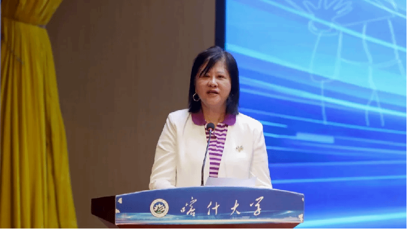 喀什大学外籍教师地娜· 斯拉木、国际学生代表阿林先后发言,分享学习中文、融入校园的真切感悟。他们讲述在喀什大学的成长收获,感谢学校搭建的优质平台,表达对中文与中华文化的由衷热爱,立志争做中外文化交流的友好使者,以实际行动诠释“中文点亮多彩梦想”的深刻内涵。